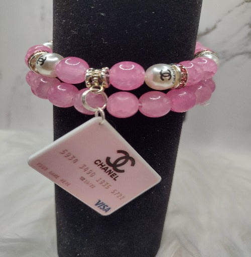Designer Pink Credit Card Stretch Bracelet